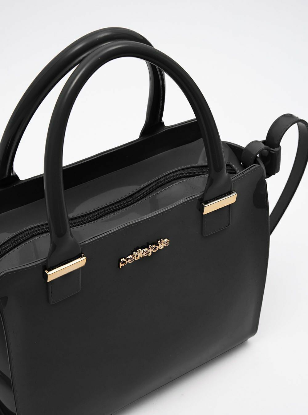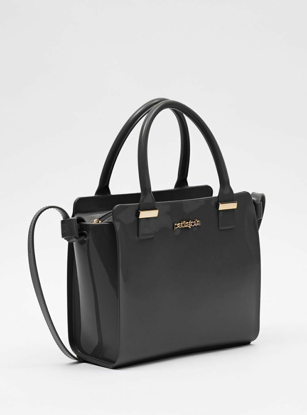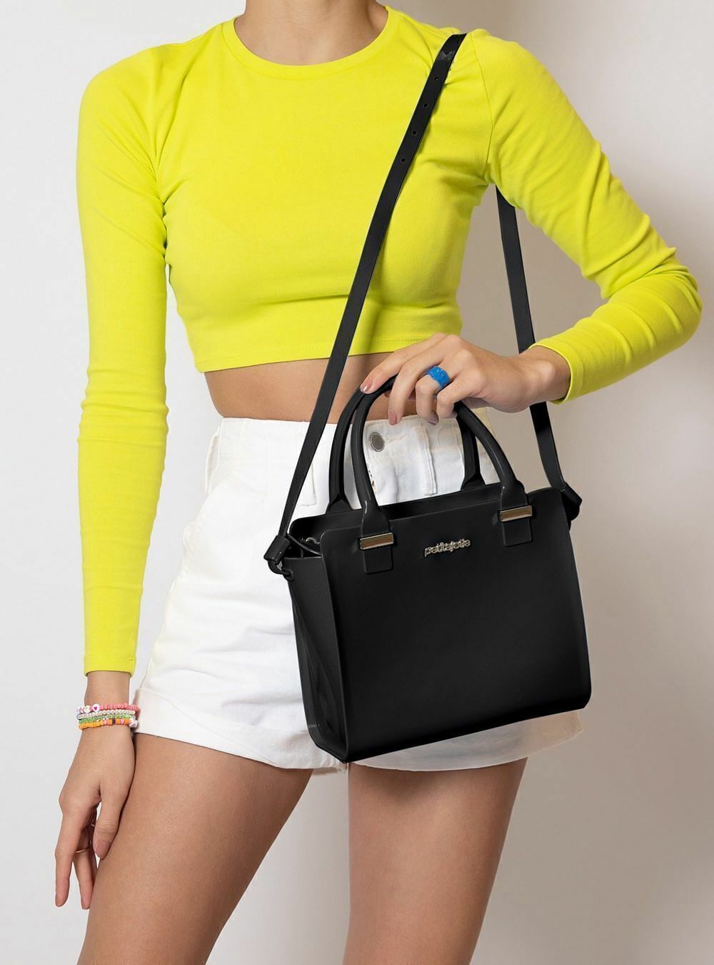 Produzida totalmente em J-Lastic, fechamento em zíper. Possui alça de mão com detalhe de metal dourado, alça transversal regulável e removível. Modelo compacto, mas com ótimo espaço interno. Ela é uma graça e já virou queridinha em todo o Brasil!
