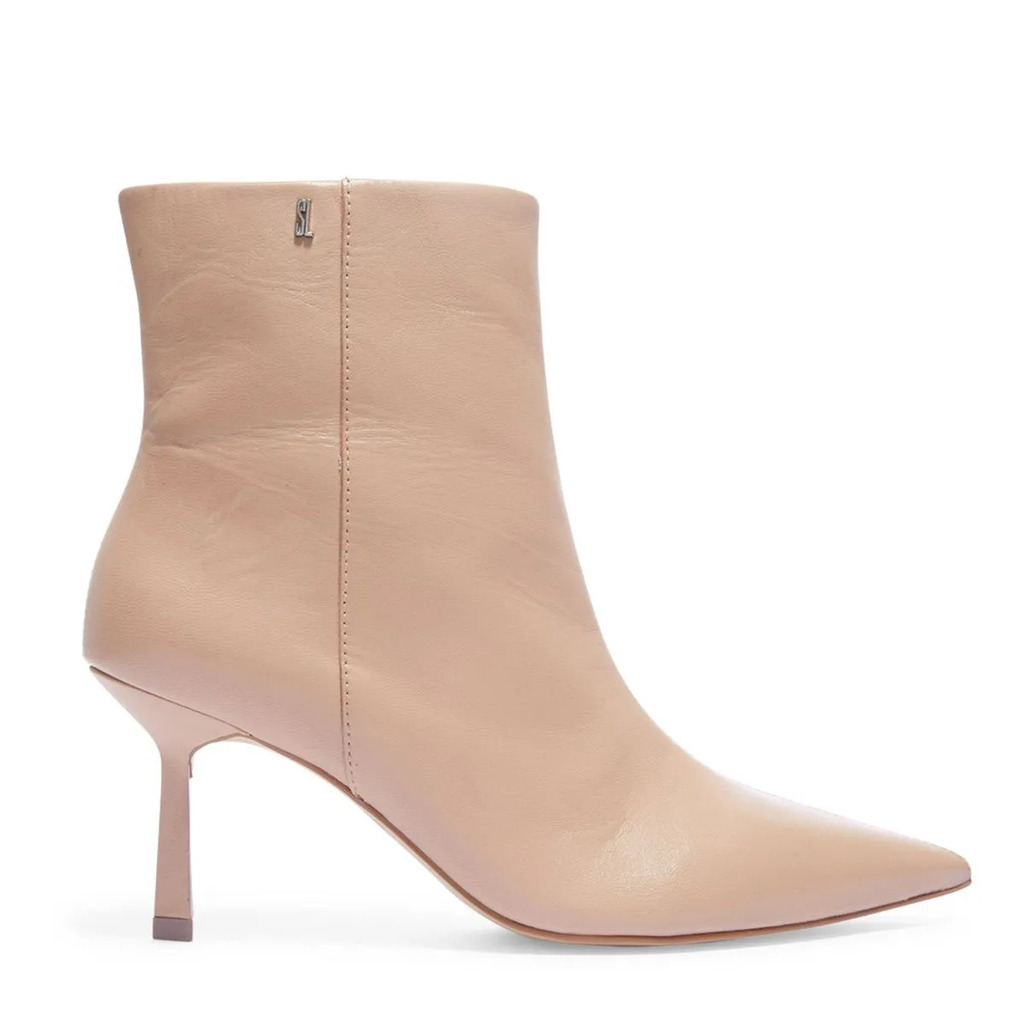Bota cano curto confeccionada em couro pelica premium, possui bico fino e salto médio fino, fechamento lateral em zíper, tornando uma escolha sofisticada e versátil que pode complementar uma variedade de looks. Seja para ocasiões formais ou para adicionar um toque de elegância ao visual cotidiano, essa bota é uma opção atemporal e estilosa.