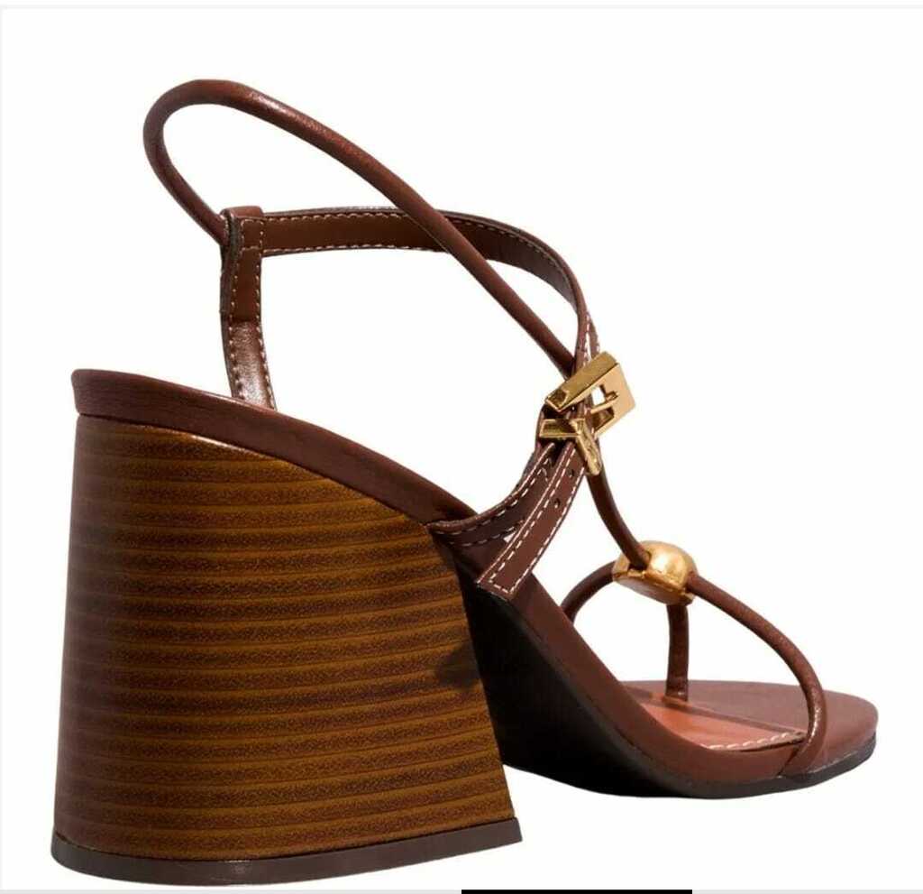 Sandália confeccionada em napa soft. O modelo apresenta salto bloco, bico arredondado e tiras finas com fechamento por fivela. Perfeita para compor looks refinados em eventos e ocasiões especiais.